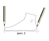 2. Карандашом очертите ступню (см. рисунок 1). При измерении держите карандаш строго вертикально и следите, чтобы карандаш находился в постоянном контакте со ступней во время всего процесса.